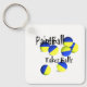 The key chain is made of metal and really sturdy. The flower design is really cheerful. The logo and colors are clear and crisp!