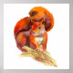 Painted Alert Red Squirrel On A Branch Rustic Poster