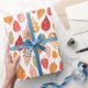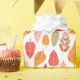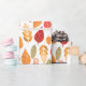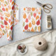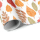 A repeating pattern of autumn leaves in shades of orange, coral, and dusty green. The leaves are all different shapes and sizes. The white background can be changed to whatever colour you like using the customise tool!