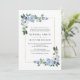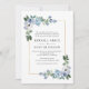 A blue wedding theme design with a dusty blue back and blue and white painted flowers with green foliage. A perfect design for your summer, spring and winter wedding. You can personalise the text and colour detail on this wedding invite template.