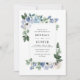 A floral frame design with lovely blue and white flowers with green foliage. The colour and text can be edited to match your wedding theme. you can change the text size,font and placement.