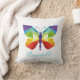 Pretty personalised throw pillow for your favourite butterfly lover. A simple, yet elegant, painted butterfly, in vivid hues of the rainbow. Front of pillow has large butterfly centred, with any name scripted below. Back of pillow has a design of scattered smaller painted butterflies.