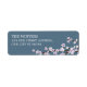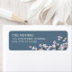 An elegant wedding invitation set featuring branches of hand-painted pink & white cherry blossoms on an ash blue background accented with modern calligraphy. Original design & illustrations by Kitty Pie Prints.