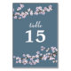 An elegant wedding invitation set featuring branches of hand-painted pink & white cherry blossoms on an ash blue background accented with modern calligraphy. Original design & illustrations by Kitty Pie Prints.