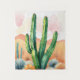 Experience the vibrant beauty of the desert with blooming cacti against soft, sunlit hills. This art print captures the tranquillity and colour of a serene desert landscape.