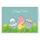 Painted Easter eggs and cute chick Easter Card. Text can be personalised.
