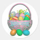 Round stickers with my design of painted Easter eggs in a pretty basket that says "Happy Easter".