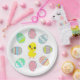 Painted Easter Eggs on white Paper Plates. Text ready to be personalised for Easter, holidays, Birthday and more.