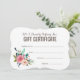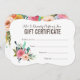 Trendy designer watercolor floral gift certificate template for you to fill in with your own text and business logo. Easily type over the example text with your own and upload your business logo to give that extra professional finish!