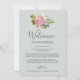 These painted floral wedding welcome letter & itinerary cards are perfect for a modern wedding. The elegant and romantic design features beautiful painted acrylic flowers in blush pink and grey, with pops of colourful blue and orange. The front of the card features a welcome letter and the back of the card features the wedding itinerary. These notes are perfect for destination weddings and hotel guest welcome bags.