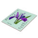 A bright floral tile of painted flowers (purple iris on mint background) with verse from Psalm 118:24