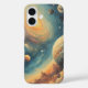 Embark on a celestial journey with this vibrant, vintage-style space art! This phone case captures a breathtaking view of a distant galaxy, featuring prominent planets and moons set against a swirling nebula of gold, deep blue, and amber tones. The aesthetic is reminiscent of classic oil-painted sci-fi book covers, complete with dynamic clouds and twinkling starlight. This is the perfect statement piece for dreamers and anyone who loves the magnificent beauty of the universe.