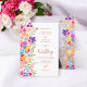 A modern, delicate hand painted garden wild flowers in bright hues, pink, red, blue, yellow and green, with an elegant brush script font to celebrate your summer outdoor wedding in style. Add your photo at the back!