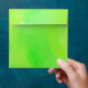 An envelope with a green painted abstract design on both the outside and inside. Nice in itself or can be further customised. Enter your name and address for the return address or clear this if you would prefer the envelope blank.