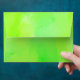 An envelope with a green painted abstract design on both the outside and inside. Nice in itself or can be further customised. Enter your name and address for the return address or clear this if you would prefer the envelope blank.