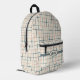 A roughly painted grid in pastel colours of teal, peach, and grey-green on a dark cream background creates a casual backpack that you will love!