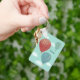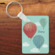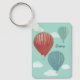This keychain features my painted illustrations of hot air balloons with realistic style depictions of balloons in red, blue and green along with white clouds set against a light blue sky. This keychain is ready to be customised with your own personalised message.