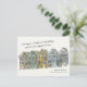 Hand-drawn holiday travel postcard featuring an illustration of the Painted Ladies, the decorated Victorian homes in Alamo Square, San Francisco. Original art and design by Annie Montgomery Design.