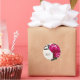 These beautiful wedding stickers feature a modern watercolor magnolia design in vivid shades of pink, white, gold, and green with a rich, black, background.