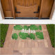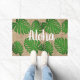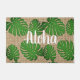 Digitally painted tropical green leaves with the greeting " Aloha" - doormat with some nice , exotic summer feel ,burlap look background . Design by Alma Wad ,