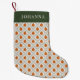This stylish Christmas stocking features a pattern of painted oranges and pine sprigs in a diamond shaped layout. Easy to personalise. Perfect if you're going for that citrus look for Christmas! Great for babies, kids, teens, or adults!