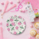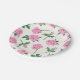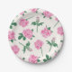 Painted Pink and Green Rose Pattern Paper Plate