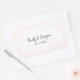 Decorate wedding party favors with these personalized stickers. They feature your names and your wedding date in black lettering in a white oval frame that's sent against a painted checkerboard pattern in pretty pastel pink and white.