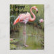 Painted Pink Flamingo In Pond, Birthday Postcard