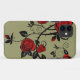 Pretty painted red roses with black stems, curly vines and black leaves.