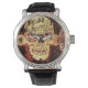 Painted Sugar Skull with faded roses and monocle steampunk glasses