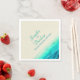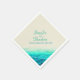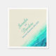 Beautiful aqua blue painted sea with graphic waves sparkle overlay wedding napkins in aqua teal, blue and sandy ivory cream and white. A great personal addition to your wedding tables. Personalise with your names and wedding date. A beautiful beach, coastal or ocean inspired, contemporary, wedding table napkin featuring a unique stylised, hand watercolor sea, on white background. Perfect for a modern beach, ocean or ship nautical wedding. Uniquely designed and painted by Sarah Trett. www.mylittleedenweddings.com