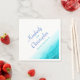 Beautiful blue painted sea with graphic waves sparkle overlay wedding napkins in aqua teal, blue and white. A great personal addition to your wedding tables. Personalise with your names and wedding date. A beautiful beach, coastal or ocean inspired, contemporary, wedding table napkin featuring a unique stylised, hand watercolor sea, on white background. Perfect for a modern beach, ocean or ship nautical wedding. Uniquely designed and painted by Sarah Trett.