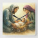 Painted Style Nativity Scene Holiday Card Square Wall Clock