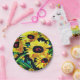 This custom paper plate features painted sunflowers in bold visual acrylic paint.