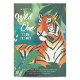This baby shower invite features a beautiful painted illustration of an orange tiger in a lush jungle setting. The words "A little wild one is on the way" are prominently displayed, making these cards the perfect way to show your excitement for the new baby one the way.