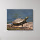 Painted turtle on a log canvas print