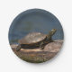 Painted turtle on a log paper plate