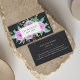 Dramatically elegant business cards feature a bouquet of watercolor painted wildflowers printed on rich black paper. Your name and title or profession are displayed in the centre in modern lettering on a white rectangular element. Add your full contact details, including social media links or handles, to the reverse side. A chic choice for makeup artists, stylists and more.