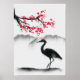 Painted Wall Art with Sakura and Heron