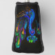 Bright blue body with colourful feathers against black creates a single funky bird.
