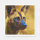 A digital painting that merges hyper-realism with bold, contemporary abstraction. This captivating portrait of a African Wild Dog showcases a harmonious clash of vibrant hues deep blues, golden ochres, and electric greens that breathe life into every fur strand and shadow. The textured, almost cubist brushstrokes add depth and movement, transforming a simple canine profile into a statement of raw beauty and emotional intensity.
