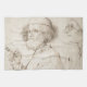 The Painter and The Connoisseur by Pieter Bruegel the Elder, c. 1565, is a humourous, caricatural pen and ink drawing contrasting the lofty artist with dull-witted art buyer, critic, or connoisseur. This is believed to be a rare self-portrait by Bruegel. The connoisseur babbles away, spectacles perched on his nose, his hand jammed into his purse as if reaching for money.