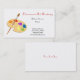 Business cards suitable for any artist or art teacher. This card features a white background with a drawing of a paint pallet and paint brush on the left side. All text is customisable on the front and back and you can add more if needed.