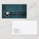 This simple and dark themed painter business card features a chrome icon of a paint brush enclosed within a chrome circle. Your business name and text/tagline appear within a black text panel strip that runs from the icon from the left towards the right edge of the card. The background of the card consists of a dark themed grunge pattern. Your contact details appear on the lower left on the back of the card. Perfect for construction, building, skilled trades, agressive, professional, impact, dark themes.