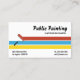 Business card design for painters showing a paint roller and three lines of different colours. Font style, colour and size can be personalised. A logo can be uploaded and added to the design. The business card is ideal for painters, handyman or renovation specialists.