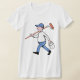 This design is a good one for any painter as it is of a painter on his way to work. This painter is carrying a tin of paint and has a paint roller over one shoulder. He is wearing a cap and looks like he is off to a job. This painter looks great on this womens t-shirt. Perfect for yourself or as a gift