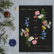 Stunning moody wedding save the date announcements featuring a frame overlaid with bold watercolor dutch flowers in blue, white, pink and yellow on a charcoal background. Personalize with your details in gold foil and add your photo to the reverse.