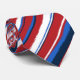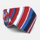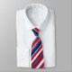 NEW! Random hand painted brush strokes make up this original painterly striped necktie. A four colour textile design. A red ground with white, royal and navy blues.