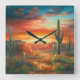 Painting Of A Colourful Desert Sunset Painting Square Wall Clock
