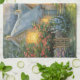Painting Of A Rustic Fantasy Cottage Tea Towel